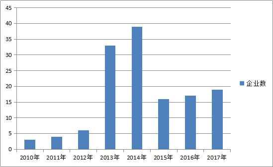 2010-2017年新增區(qū)塊鏈企業(yè)數(shù)