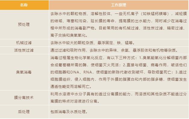 一般的工藝流程如下圖:原水→預(yù)處理→膜分離→后處理→用戶。