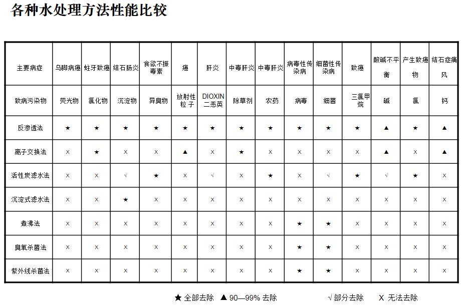 水質(zhì)處理方式有以下十類:軟化法、蒸餾法、煮沸法、磁化法、礦化法、臭氧紫外線殺菌、活性炭吸附、RO逆滲透膜、微過(guò)濾、超過(guò)濾。