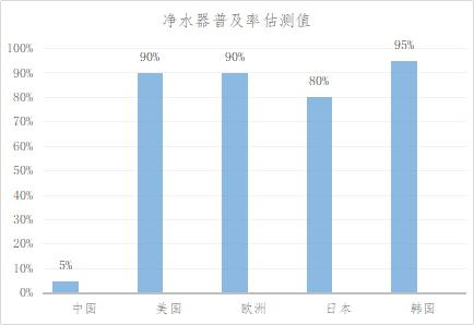 中國(guó)市場(chǎng)凈水器普及率相比歐美發(fā)達(dá)國(guó)家較低,凈水器普及率僅約占5%,同時(shí)市場(chǎng)總規(guī)模也較其他廚衛(wèi)電器較小。