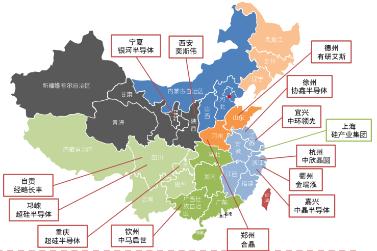 圖表12 中國大陸部分硅片材料重點(diǎn)企業(yè)