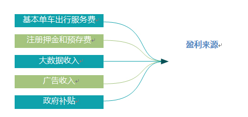 目前,共享單車的盈利來源主要分五類,第一類是基本單車出行服務(wù)收費,第二類是注冊押金和預(yù)存費的增值收入,第三類是大數(shù)據(jù)收入,第四類是廣告收入,第五類是政府補貼。