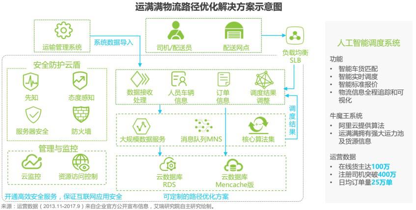 2016年底,運滿滿攜手阿里云,發(fā)布了“牛魔王”人工智能調(diào)度系統(tǒng),結(jié)合運滿滿的數(shù)據(jù)和用戶場景、以及阿里云的算法團隊,共同推動干線配貨人工調(diào)度朝著智能化方向推進?!芭D酢毕到y(tǒng)是基于云計算、大數(shù)據(jù)、移動互聯(lián)網(wǎng)和人工智能技術(shù)的公路物流領域高新技術(shù)綜合應用的典型代表,可以實現(xiàn)服務車主與貨主的智能車貨匹配、智能實時調(diào)度、智能標準報價及對物流信息全程追蹤和可視化,顯著提升公路干線物流貨源、車輛、路線、價格匹配速度、精準度和運輸組織效率。