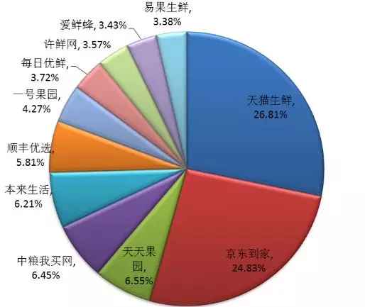 國內生鮮電商市場份額分布
