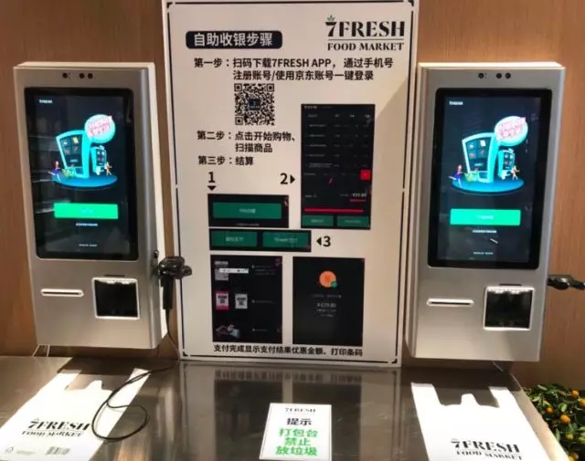選購完畢,消費者可在7fresh店內實現自助結賬。具體操作如上圖所示,掃碼下載7fresh APP,通過手機號注冊賬號,點擊開始購物,掃描商品,進行結算。但對于此全用戶手動操作的過程,如果顧客有意遺漏幾件商品的掃描與付費呢?對于此問題,京東方面回應稱“7fresh 是面向高素質消費群體的生鮮超市”。