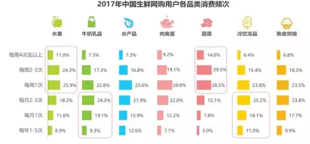 3、生鮮網購仍以水果為主品類,高頻剛需引流作用明顯。
