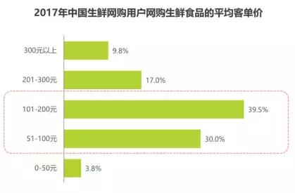 101-200元為生鮮網購單均消費集中段,51-100元為第二單均消費段。