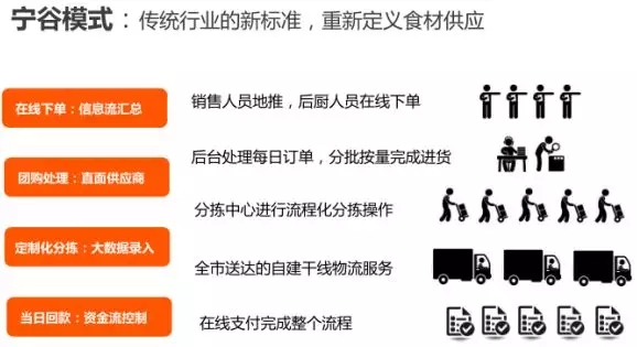寧谷物配以“易訂貨”軟件為依托,欲打造區(qū)內最大的城市商用食材供應鏈平臺;其商業(yè)模式是用平臺化團購方式+城市內自建物流配送體系,實現對城市餐飲商戶所需食材的全方位供應。其生鮮B2B模式在銀川城區(qū)已初具規(guī)模,具有代表性,本報告將著重分析。