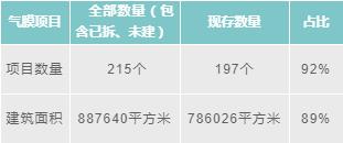 圖表3 氣膜建筑項(xiàng)目數(shù)量及建筑面積